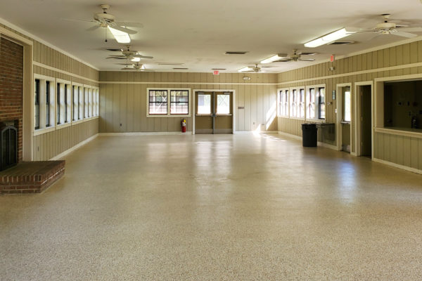 The Group Shelter is an air-conditioned and heated building that features a kitchen with a range and oven, a microwave, an ice machine, commercial refrigerator and commercial freezer. It also has both Ladies and Men's bathrooms. The building also featured electric, water and an indoor fireplace. Outside the building is a BBQ Pit. The Group Shelter can easily accommodate up to 150 people with 25 tables and 150 chairs. Cost is $300 per day to rent. This is the only ADA Accessible shelter at Georgia Veterans State Park.