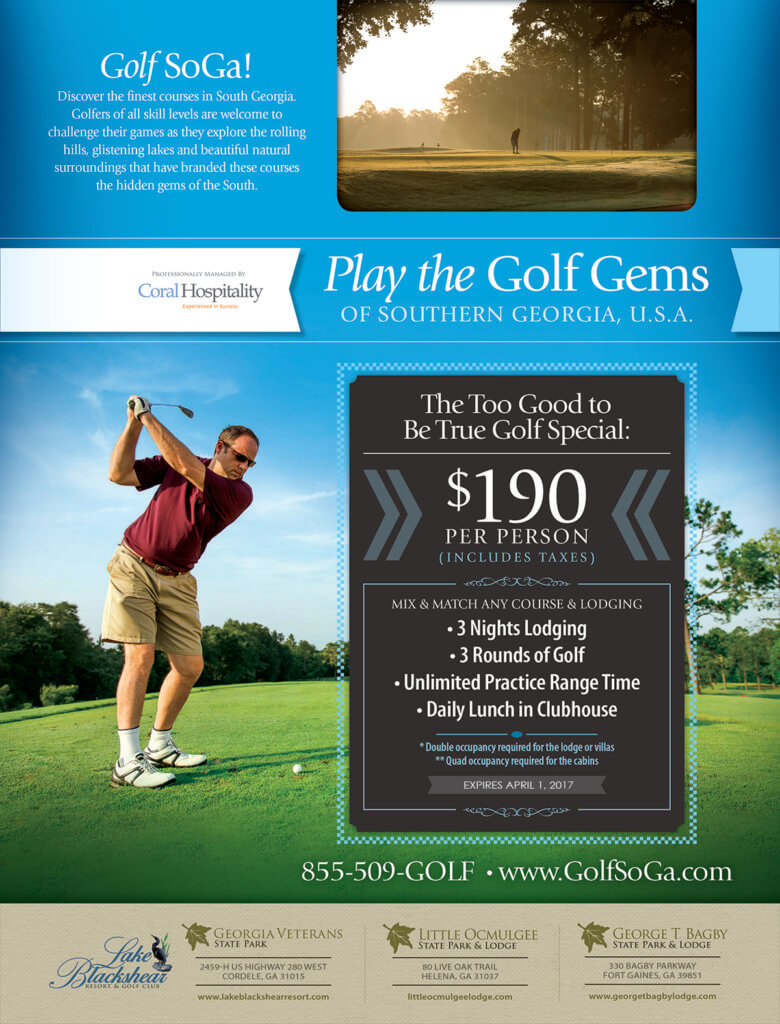 In Southern Georgia we love to relax and enjoy each day to its fullest. With the Too Good To Be True Package, you have the opportunity to do the same from one of our many connected Georgia State Parks. Coral Hospitality invites you to join us for a memorable getaway on any of our award-winning golf courses.